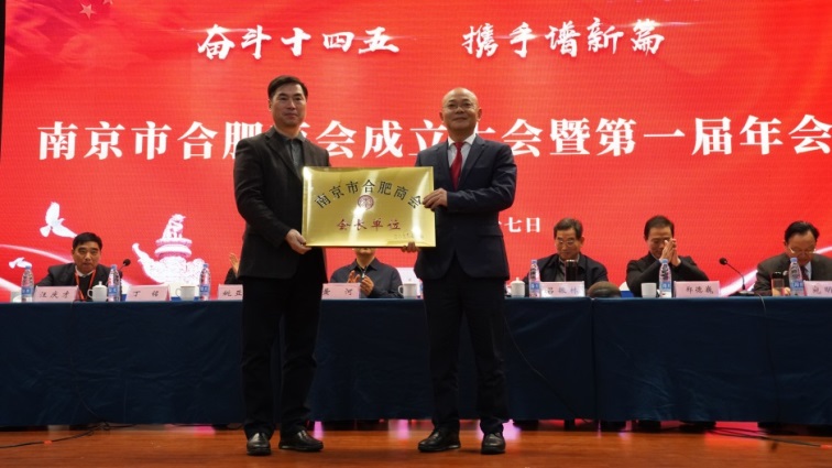南京市政協(xié)副主席黃河,合肥市政協(xié)副主席、市工商聯(lián)主席姚亞妹現(xiàn)場(chǎng)共同為南京市合肥商會(huì)揭牌。
