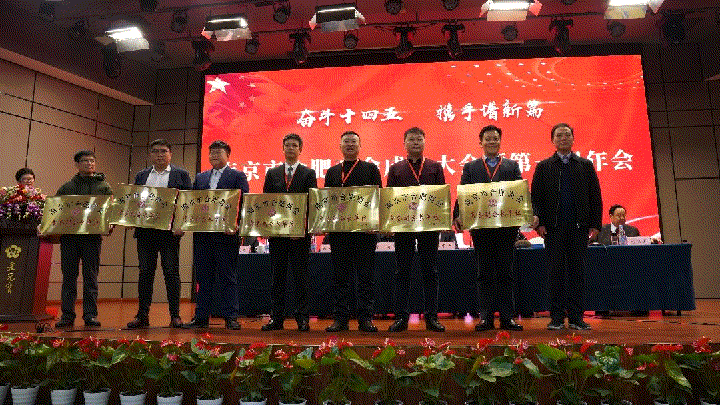 南京市統(tǒng)戰(zhàn)部副部長、市工商聯(lián)黨組書紀(jì)丁銘為商會(huì)會(huì)長單位授牌,李中兵會(huì)長領(lǐng)牌。