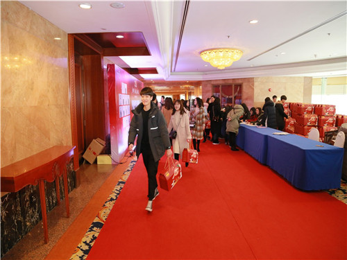 不一會(huì),員工陸續(xù)抵達(dá)會(huì)場(chǎng),有序地在外場(chǎng)禮品區(qū)簽字領(lǐng)取伴手禮盒,每個(gè)人臉上都洋溢著歡樂的笑容。
